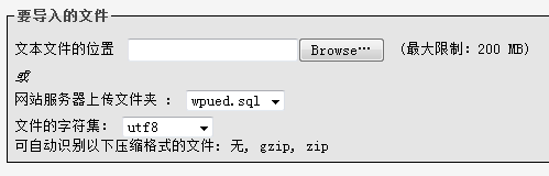 登录phpMyAdmin,点导入(import) 发现多了一个 网站服务器上传文件夹